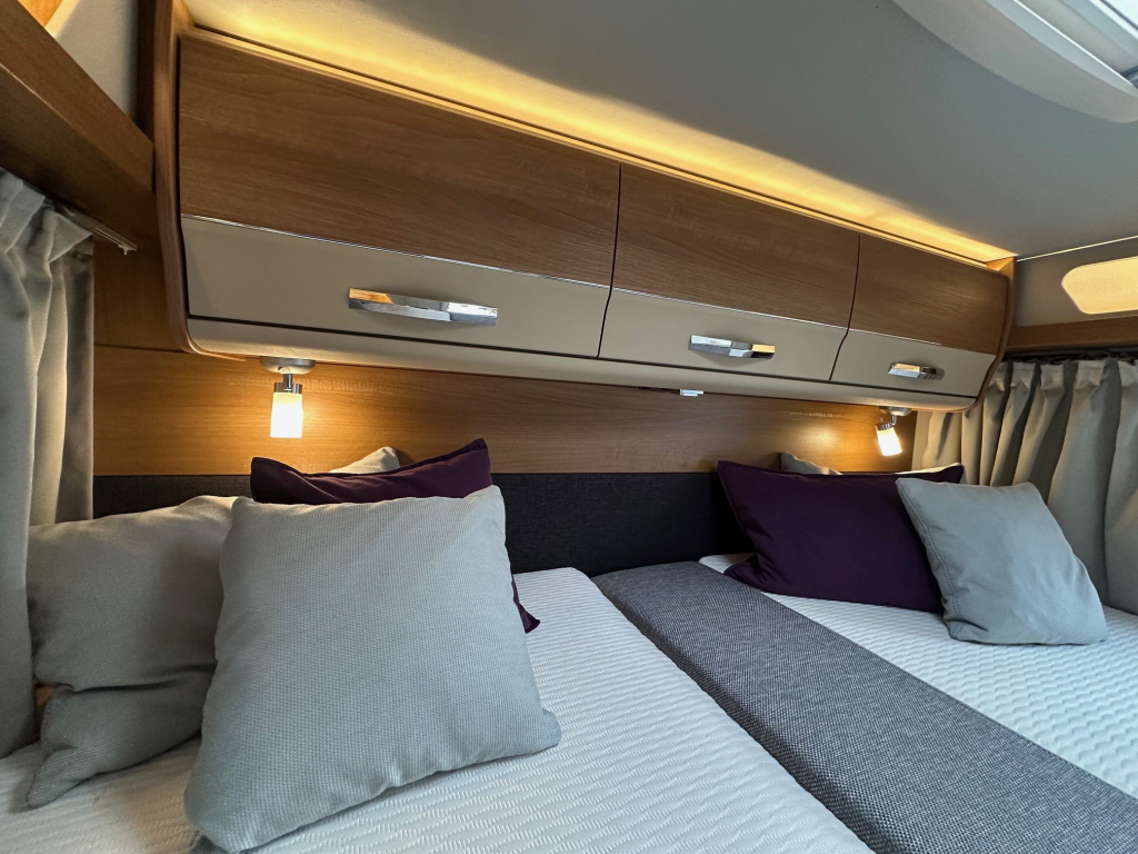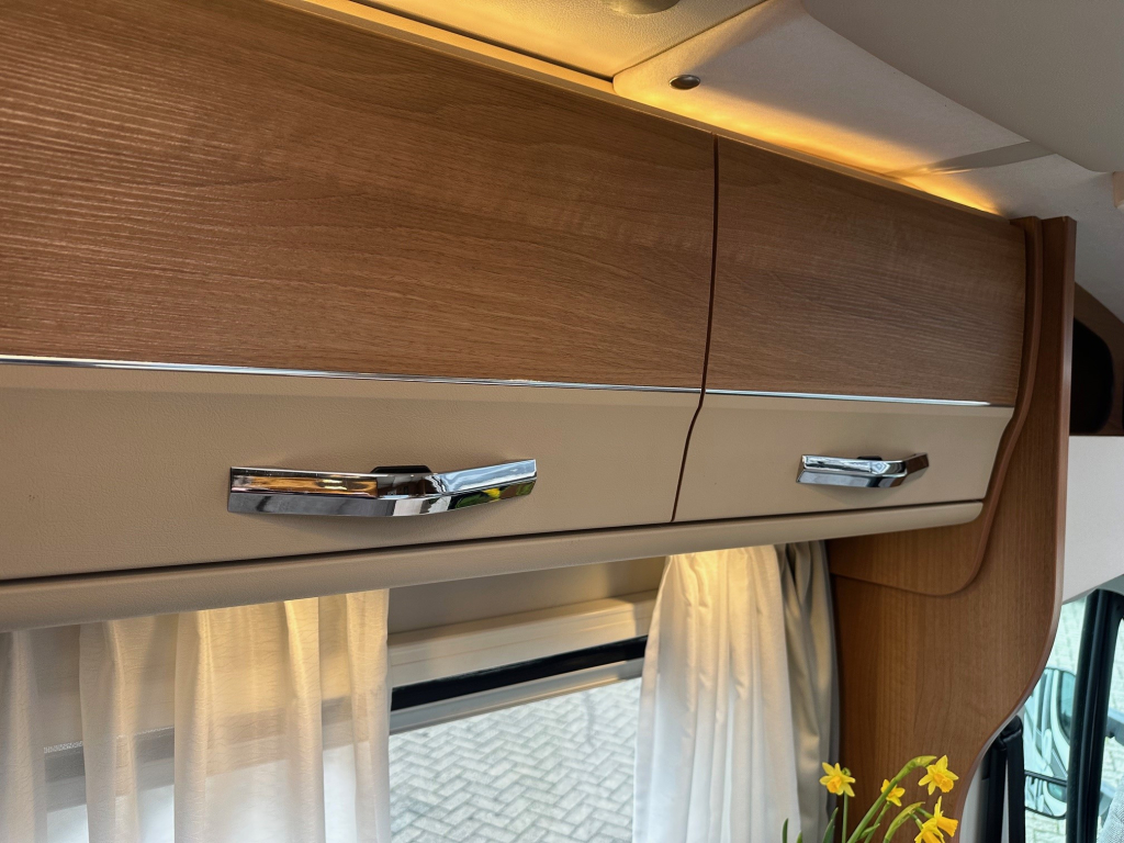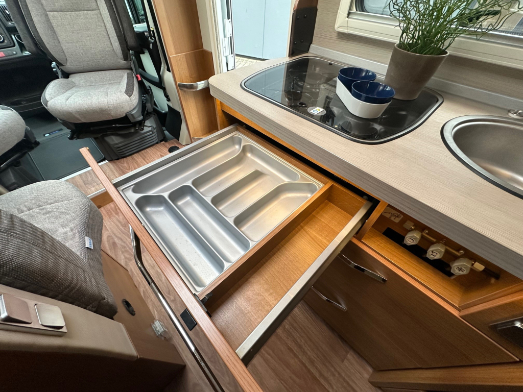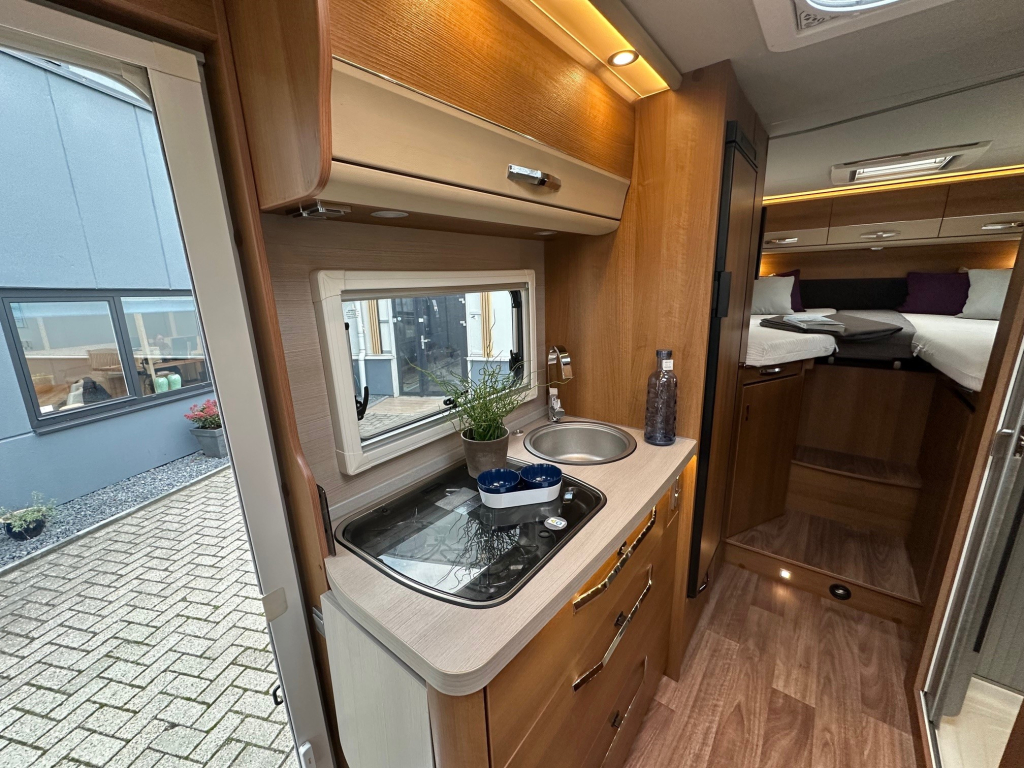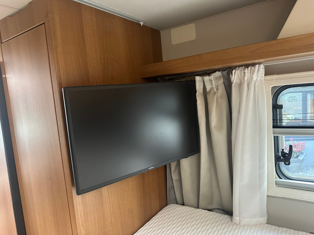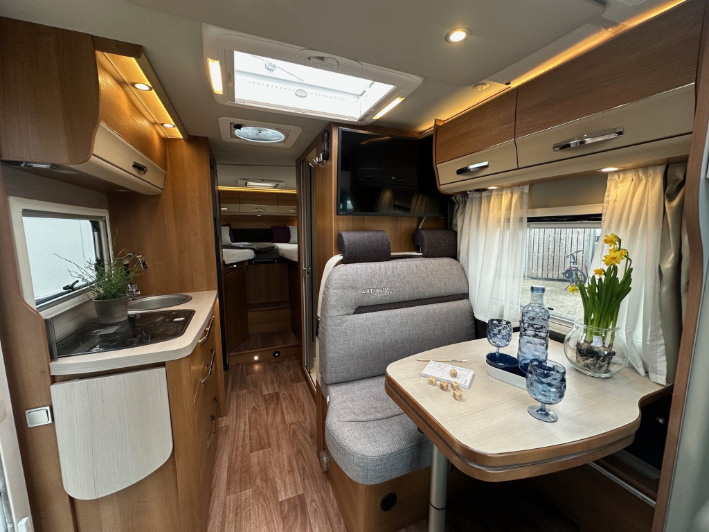 Ook op het gebied van comfort en zelfstandigheid is deze camper volledig uitgerust. De Duo Control installatie zorgt voor veilig en efficiënt gasgebruik, terwijl de MaxxFan dakventilator een aangenaam binnenklimaat creëert, zelfs op warme dagen. Het zonnepaneel maakt het mogelijk om langer vrij te staan zonder afhankelijk te zijn van campingaansluitingen. Voor ontspanning onderweg beschikt deze camper over een schotelinstallatie en maar liefst twee flatscreen televisies, zodat u overal kunt genieten van uw favoriete programmas.