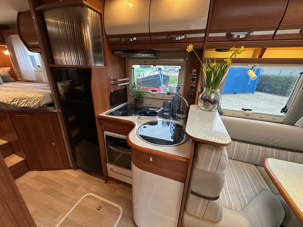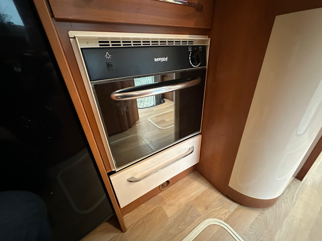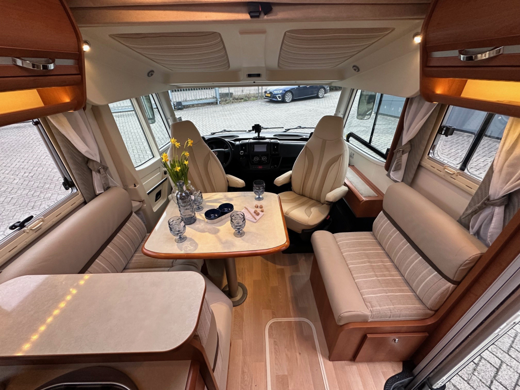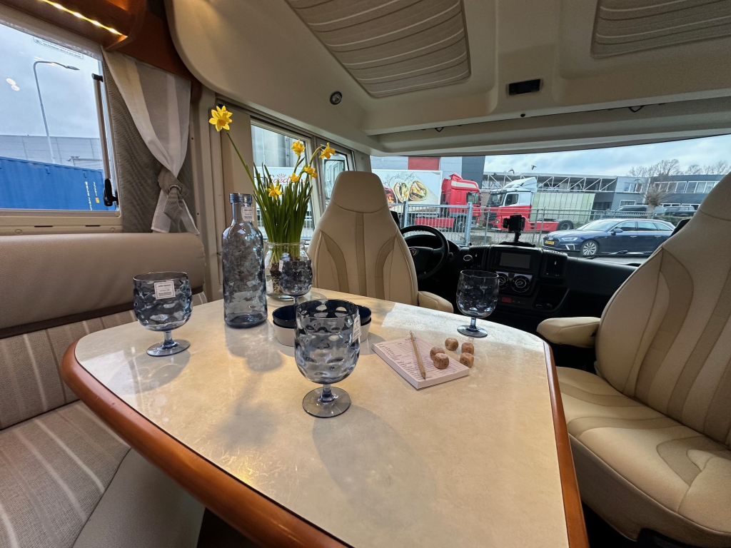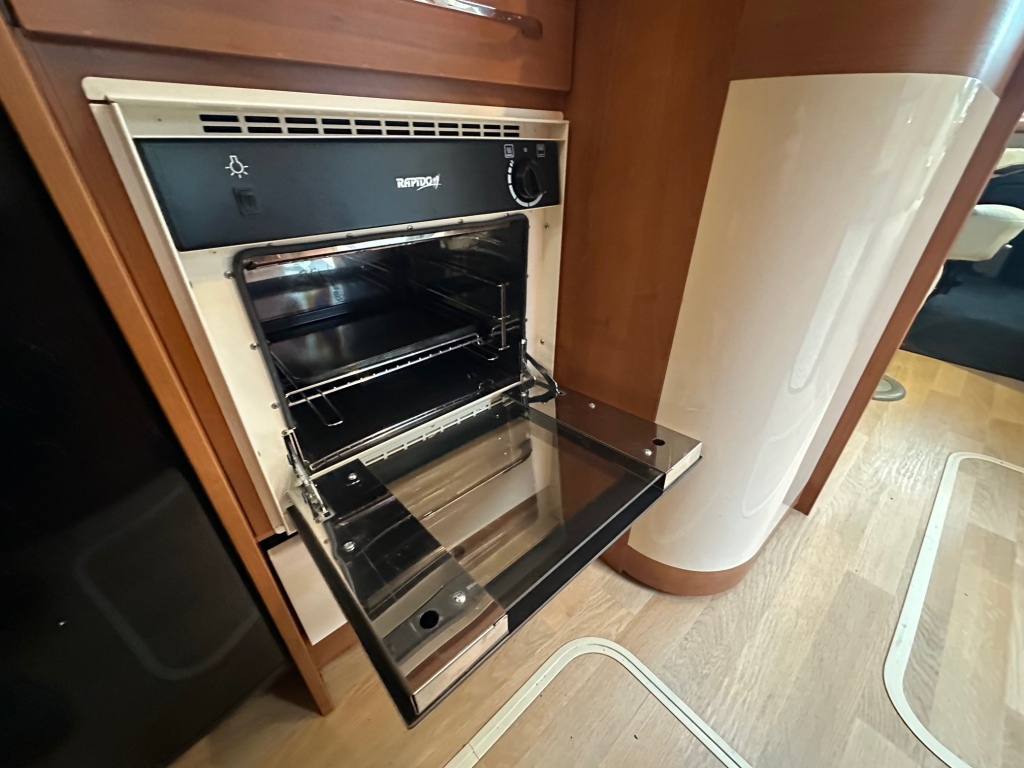 De Rapido staat bekend om zijn hoogwaardige afwerking, degelijke bouwkwaliteit en uitstekende isolatie. Deze uitvoering is handgeschakeld en rijdt comfortabel en stabiel, zowel op lange snelwegetappes als in bergachtig gebied. Binnenin ervaar je direct het ruimtelijke gevoel dat zo kenmerkend is voor dit model. De praktische zitgroep sluit naadloos aan op de volledig uitgeruste keuken, die onder andere beschikt over een oven en veel bergruimte.