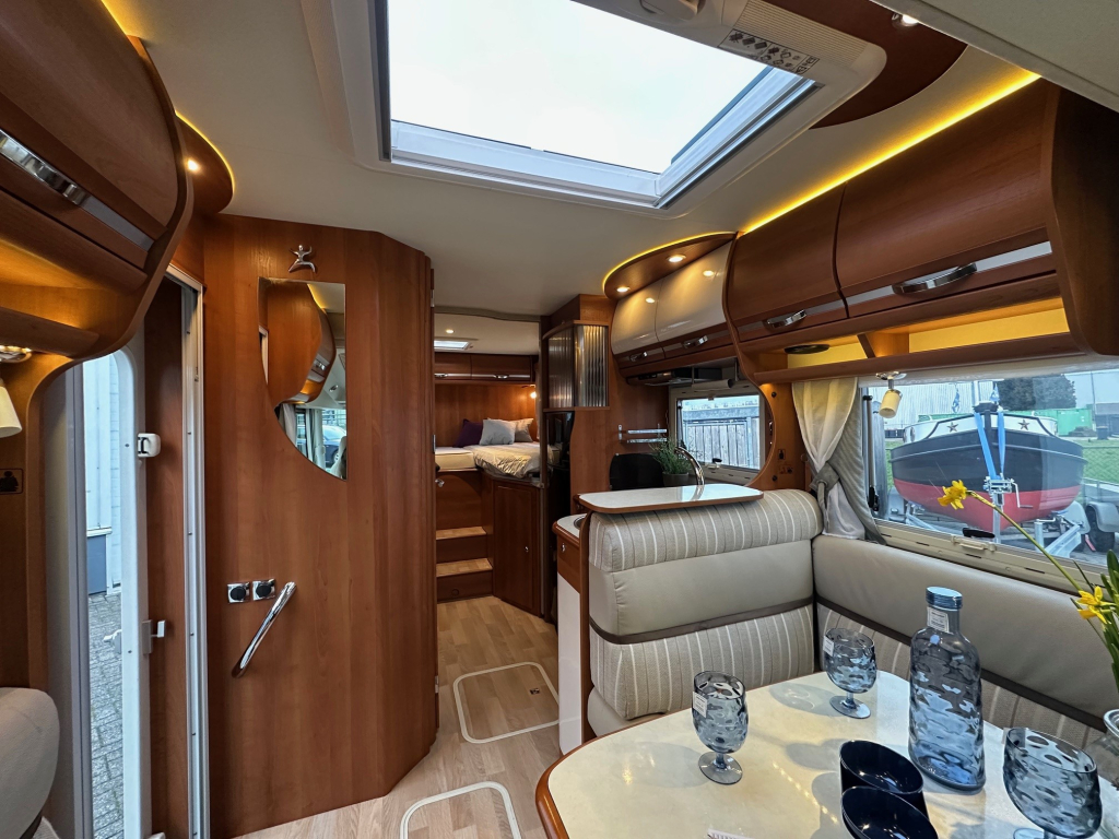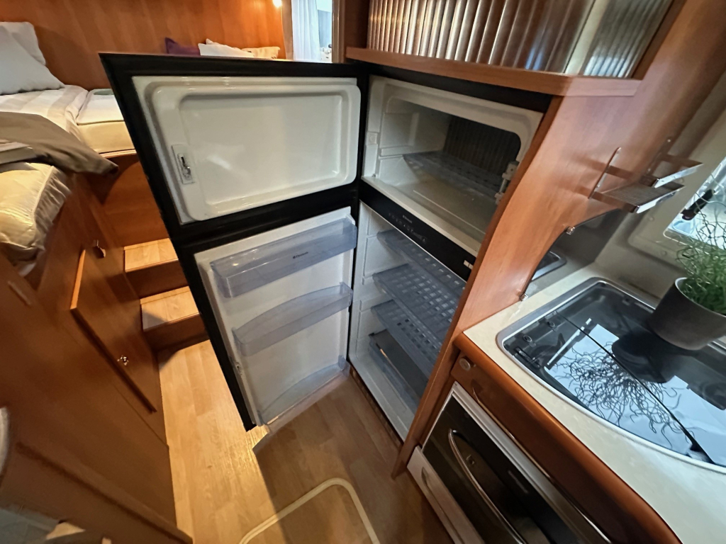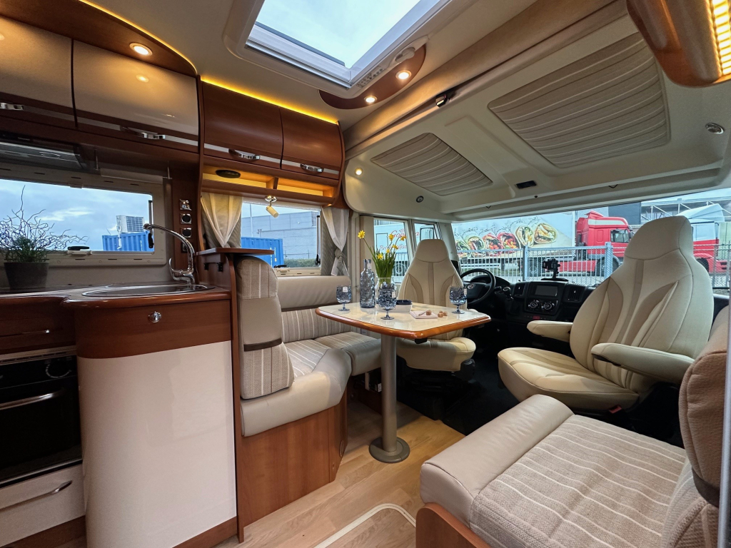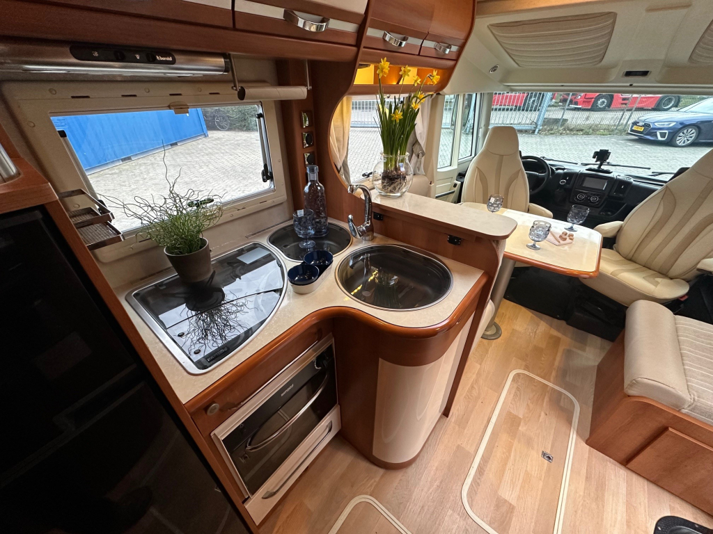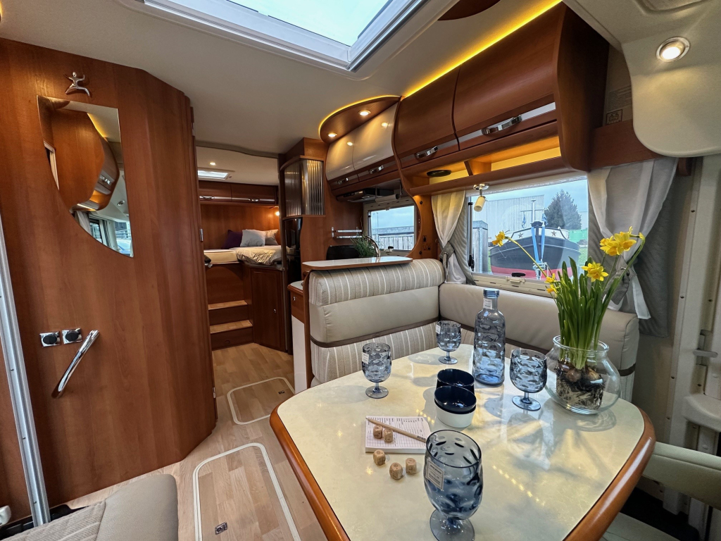 De Rapido staat bekend om zijn hoogwaardige afwerking, degelijke bouwkwaliteit en uitstekende isolatie. Deze uitvoering is handgeschakeld en rijdt comfortabel en stabiel, zowel op lange snelwegetappes als in bergachtig gebied. Binnenin ervaar je direct het ruimtelijke gevoel dat zo kenmerkend is voor dit model. De praktische zitgroep sluit naadloos aan op de volledig uitgeruste keuken, die onder andere beschikt over een oven en veel bergruimte.