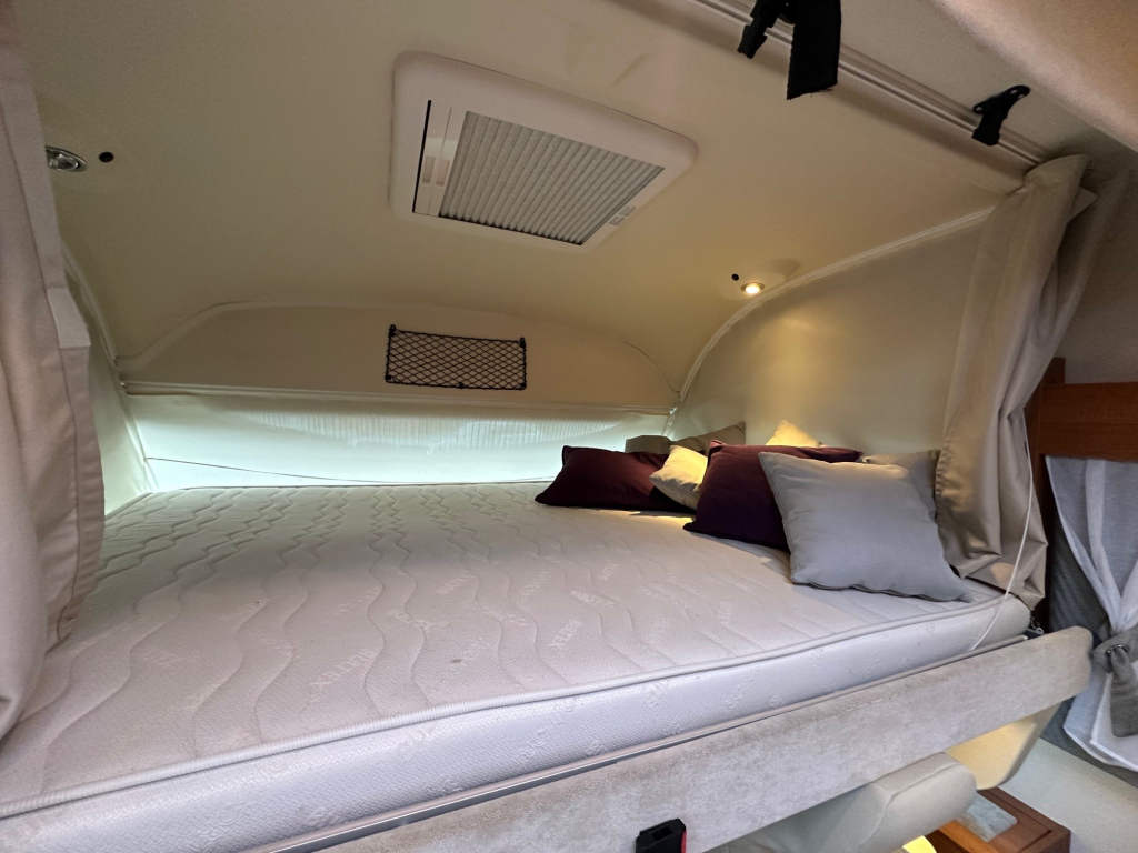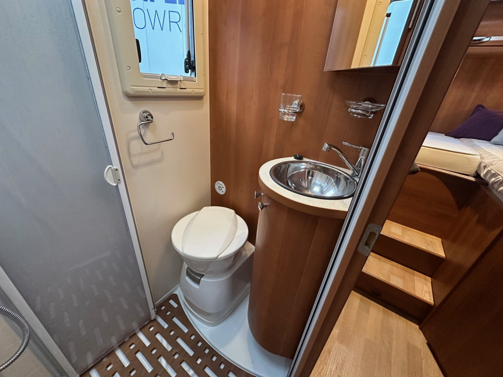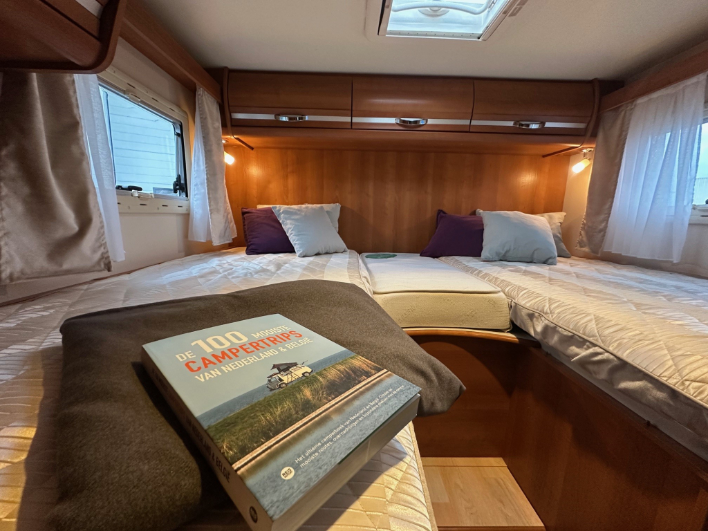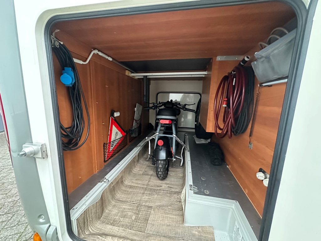 Achterin bevinden zich comfortabele enkele bedden die eenvoudig toegang bieden en zorgen voor een prettige nachtrust. Daarnaast is de camper voorzien van een hefbed, waardoor er extra slaapplaatsen beschikbaar zijn zonder dat dit ten koste gaat van de leefruimte overdag. De ruime badkamer en de grote garage maken het comfortniveau compleet. In de garage is meer dan voldoende plaats voor fietsen, kampeeruitrusting en andere bagage.