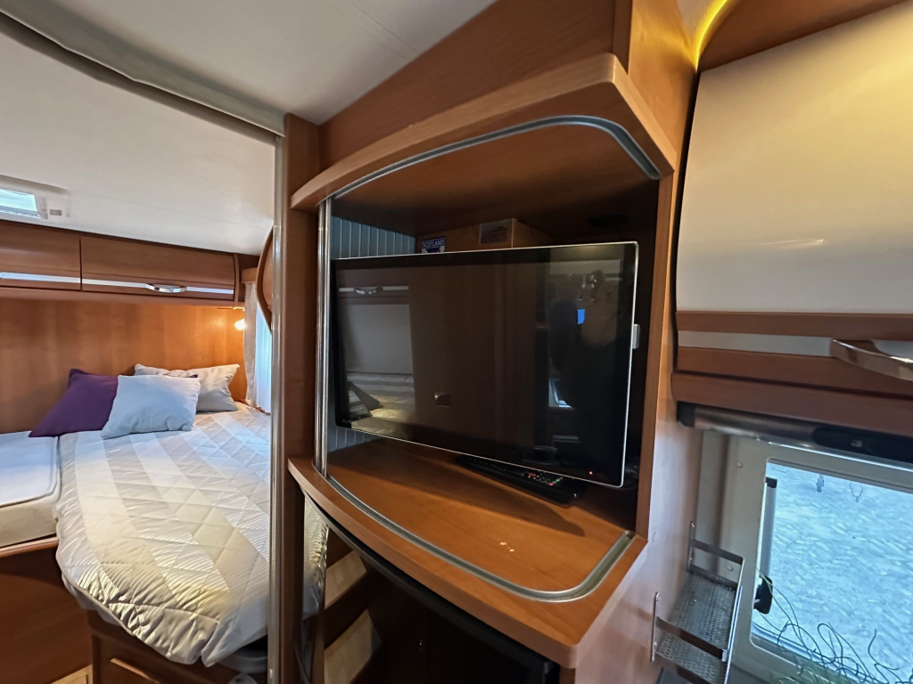 Deze camper is uitgerust met diverse extras die het reizen nog aangenamer maken, waaronder een zonnepaneel voor extra zelfstandigheid, een omvormer, navigatie, een achteruitrijcamera en een flatscreen televisie. Ook is er een fietsendrager aanwezig. Optioneel is een elektrische scooter over te nemen voor € 2.500, ideaal om vanaf de camping de omgeving te verkennen zonder de camper te verplaatsen.